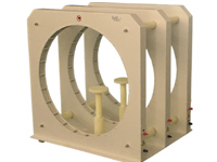 HM-3-900型線圈就是在亥姆赫茲線圈的基礎上,改進后的三線圈亥姆赫茲線圈組,經(jīng)過計算模擬仿真實踐,三個線圈的半徑都為R時,中心線圈到兩個線圈的距離為0.7R, 中心線圈的匝數(shù)為兩邊線圈匝數(shù)的0.5倍,
